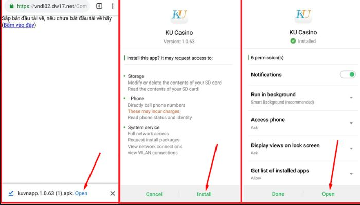 Bước 3: Một file mua app Kubet đã được tải về mobi của mình. Đó là file thông báo tải tiện ích mà người chơi nên tham khảo. Đồng đội kế tiếp nhấn chất nhận được cài đặt phầm mềm để khối hệ thống chạy thông thường. Đặc biệt quan trọng nếu như bạn đang cần dùng chế độ chặn download ứng dụng mới thì hãy tắt nó đi nhé.Bước 4: chờ khoảng 1-2 phút để app mua xuống chiến thắng. Lúc này game thủ cần đăng nhập vào tài khoản chơi trò chơi của bản thân mình thì mới có lẽ dự vào vào các game show ở trong nhà cái nhé.