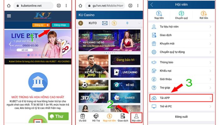 truy nhập cổng trò chơi Kubet trên thiết bị dế yêu của mình and singin nhé. Tiếp đến nhấn chọn mục “Tải ứng dụng Kubet”